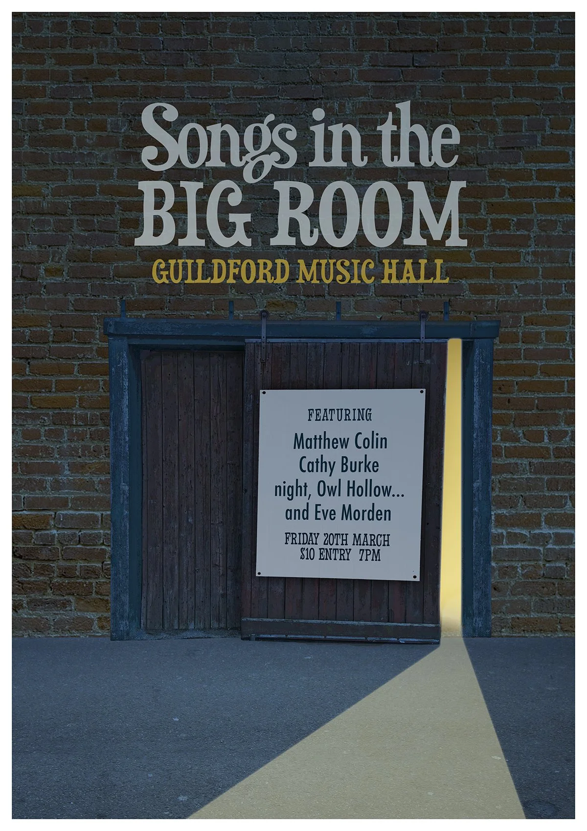 This live music video was shot in the Royal Melbourne Exhibition Building, using two phones. Don't look too close but you can see one taped onto the guitar, recording audio, the other one is held by my legendary friend Phil Watt
